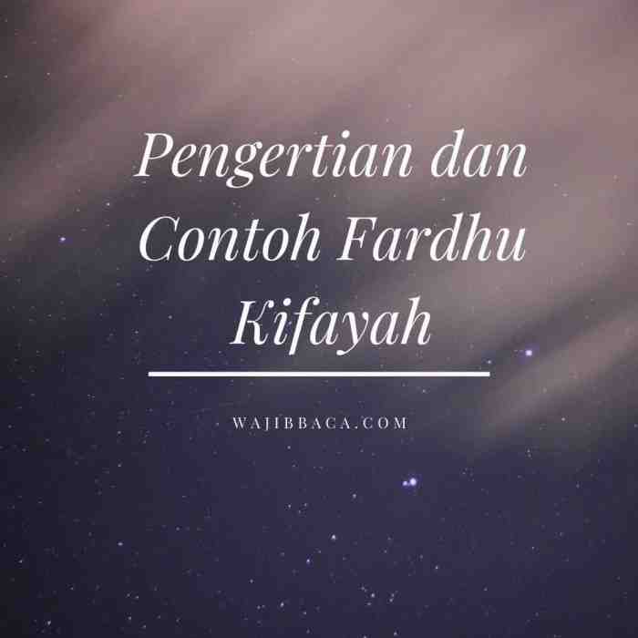 Orang yang melanggar yang wajib dianggap kafir. Contoh lainnya adalah azan sebagai penanda. Contohnya dalm suatu desa ada orang yang meninggal tetapi orang di desa itu tidak ada. Contoh tentang fardhu kifayah antara lain mengurus jenazah. Menurut buku 'akhlaqul karimah' oleh hamka, fardhu kifayah adalah tugas kewajiban bersama. Akan tetapi, apabila tidak ada yang melakukannya hal tersebut, maka menjadi berdosa. Belajar mengenal allah adalah contoh perkara fardhu kifayah. Fardhu fardhu adalah kata dari bahasa arab. Pengabaian tuntutan fardhu ain dan kifayah punca keruntuhan akhlak dikalangan alam sejagat. Menunaikan perintah allah, menunaikan haji, zakat, hormat ibu bapa, menuntut ilmu, fardhu kifayah: Beberapa amalan fardhu kifayah dari sejarah islam. Rangkaian pelatihan fardhu kifayah dimulai dengan penjelasan isi kitab atau membahas tentang hukum dan tata cara memandikan jenazah, praktek cara merobek kain kafan dan sebagainya dan juga … Jika salah seorang telah menjadi muadzin, maka semua orang lainnya.